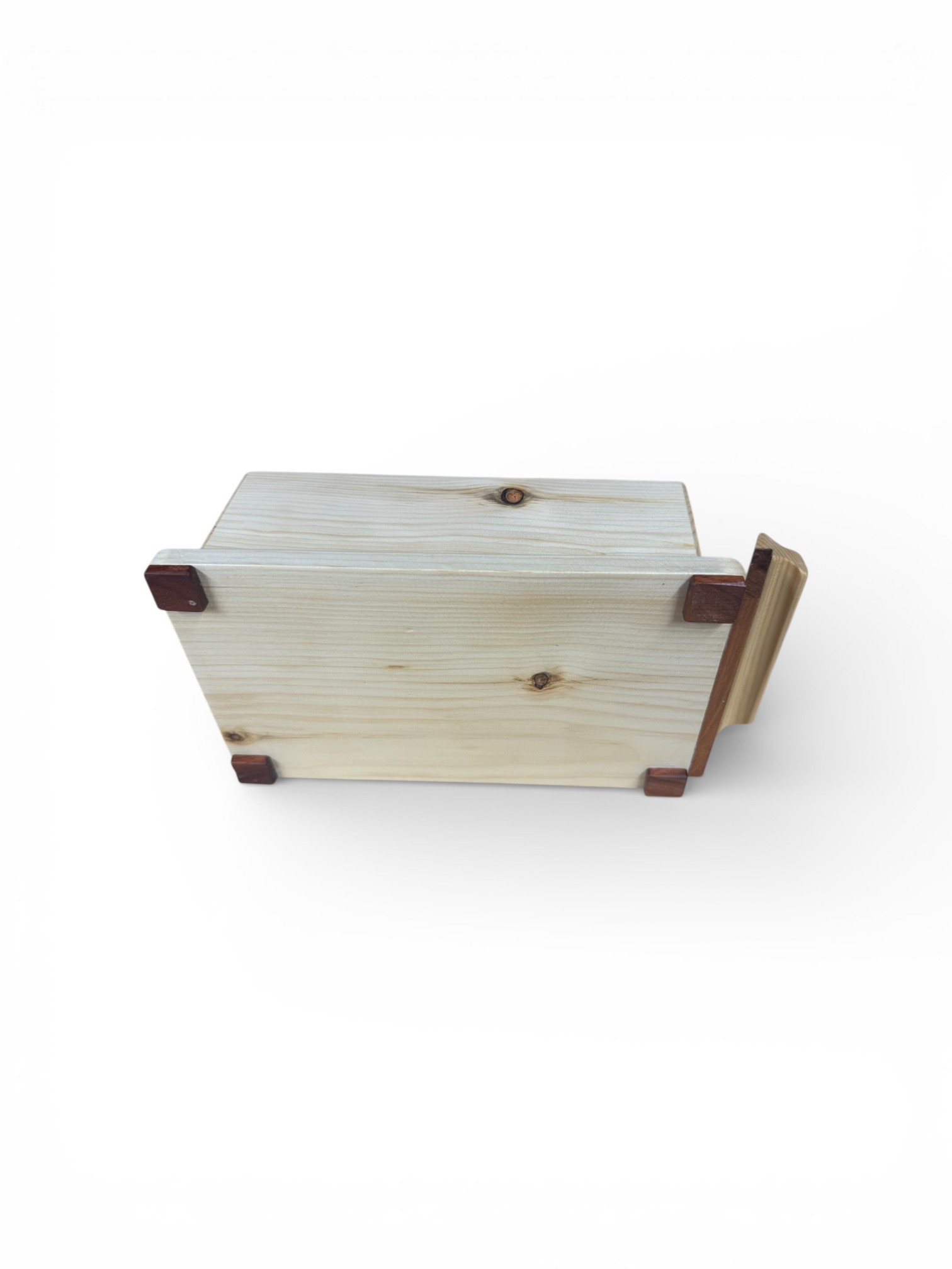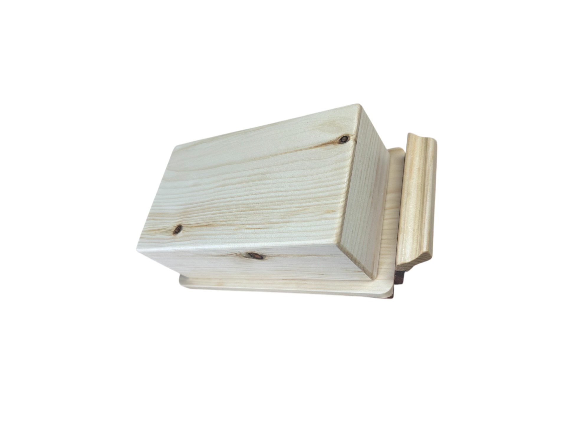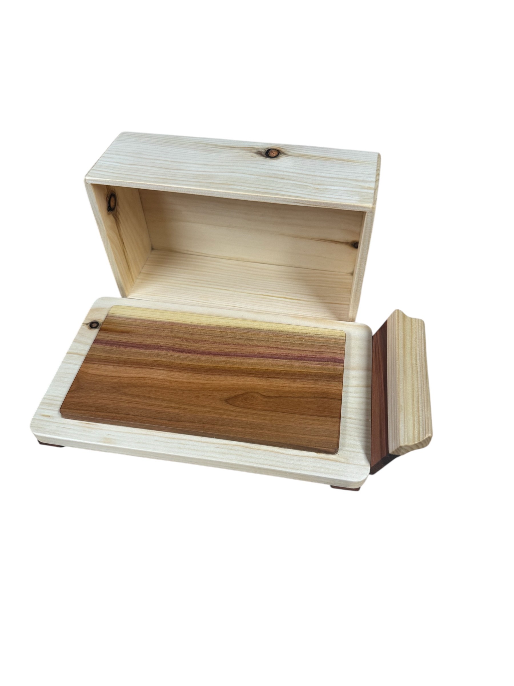 Präsentationsfläche. Die Auflage aus Zwetschgenholz ergänzt das schlichte Design der Butterdose und setzt